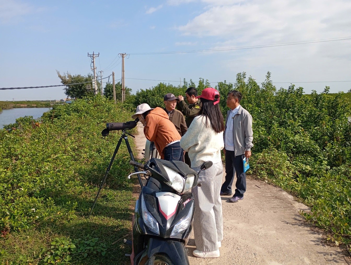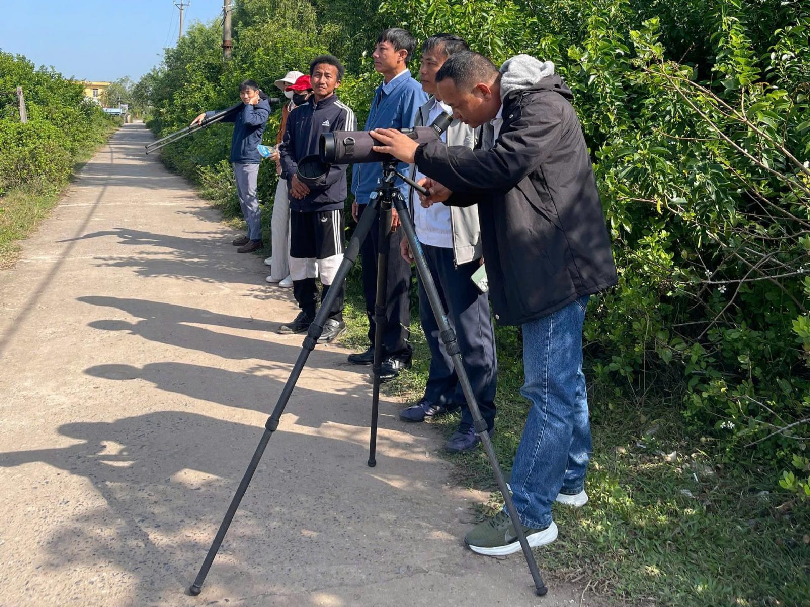 Trong khuôn khổ Chương trình, các đại biểu đã tham gia hoạt động xem chim thực địa tại khu vực các đầm nuôi trồng thủy sản quảng canh Cồn Ngạn. Hoạt động không chỉ giúp cộng đồng nhận diện trực tiếp các loài chim di cư, trong đó có Cò thìa, mà còn góp phần nâng cao nhận thức về giá trị sinh thái – kinh tế của mô hình nuôi trồng thủy sản gắn với bảo tồn, hướng tới phát triển du lịch sinh thái, du lịch xem chim trong tương lai.
