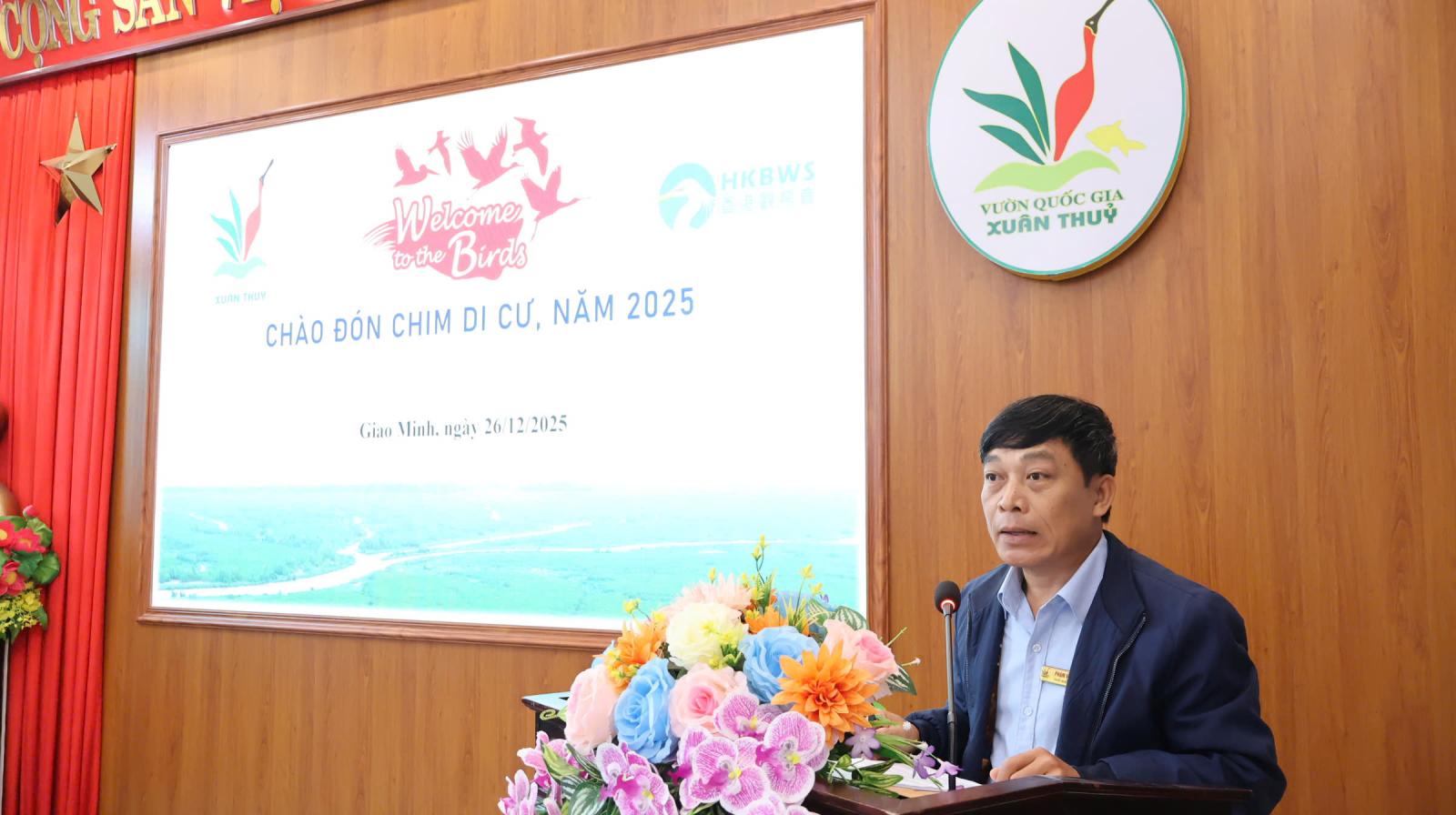 Phát biểu khai mạc, ông Phạm Vũ Ánh – Phó Giám đốc VQG Xuân Thủy nhấn mạnh: Xuân Thủy không chỉ là Khu Ramsar đầu tiên của Việt Nam và Đông Nam Á, mà còn là vùng lõi quan trọng của Khu Dự trữ sinh quyển châu thổ sông Hồng, Vườn di sản Asean, đồng thời là điểm dừng chân của nhiều loài chim nước di cư nguy cấp, quý, hiếm cấp độ toàn cầu. Đồng chí khẳng định, kết quả ghi nhận số lượng lớn chim di cư, trong đó có các loài thuộc nhóm nguy cấp trong những năm qua là minh chứng rõ nét cho hiệu quả của công tác bảo tồn. Thành công trên có được nhờ sự chung tay, đồng hành của cộng đồng địa phương, nhất là các hộ nuôi trồng thủy sản quảng canh – những người gắn bó trực tiếp với không gian sinh cảnh của chim nước mỗi ngày.