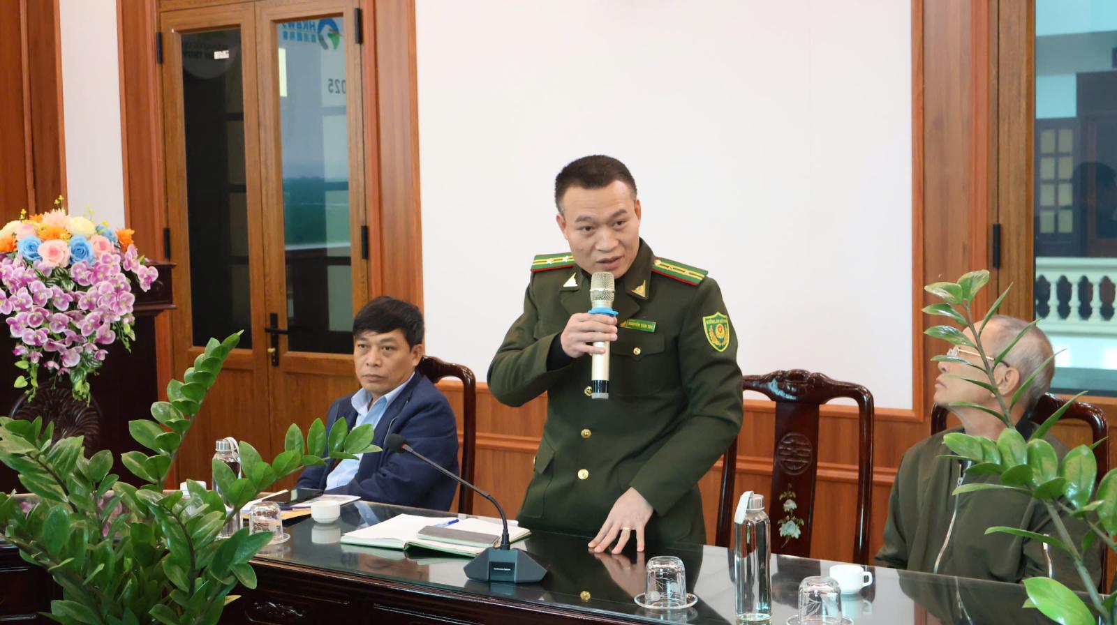 Đại diện Hạt Kiểm lâm khu vực V, ông Nguyễn Văn Túc – Hạt trưởng có bài chia sẻ tuyên truyền, phổ biến các quy định pháp luật và hình thức xử phạt đối với hành vi săn bắt, bẫy, buôn bán, tiêu thụ trái phép động vật hoang dã, đồng thời nhấn mạnh các loài thuộc nhóm nguy cấp, quý hiếm, được pháp luật bảo vệ nghiêm ngặt.