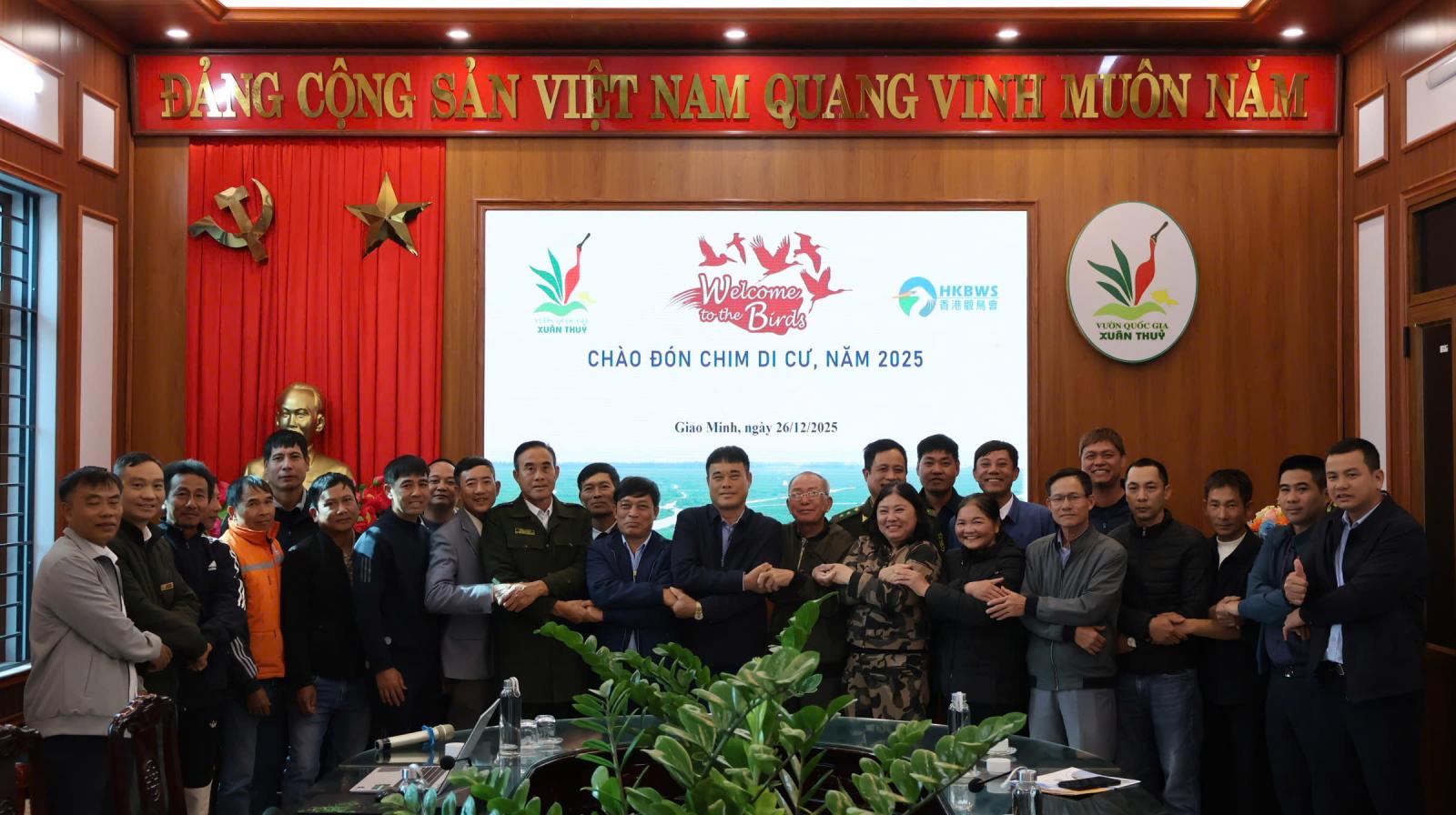 Sáng ngày 26/12/2025, Vườn quốc gia Xuân Thủy đã tổ chức Chương trình “Chào đón chim di cư năm 2025 - 2026”. Tham dự Chương trình có đại diện Ban quản lý Vườn quốc gia Xuân Thủy, Hạt Kiểm lâm khu vực V, các chủ hộ nuôi trồng thủy sản quảng canh, cùng sự đồng hành, hỗ trợ chuyên môn của Trung tâm Bảo tồn Thiên nhiên Việt (VietNature) và Hong Kong Bird Watching Society (HKBWS).