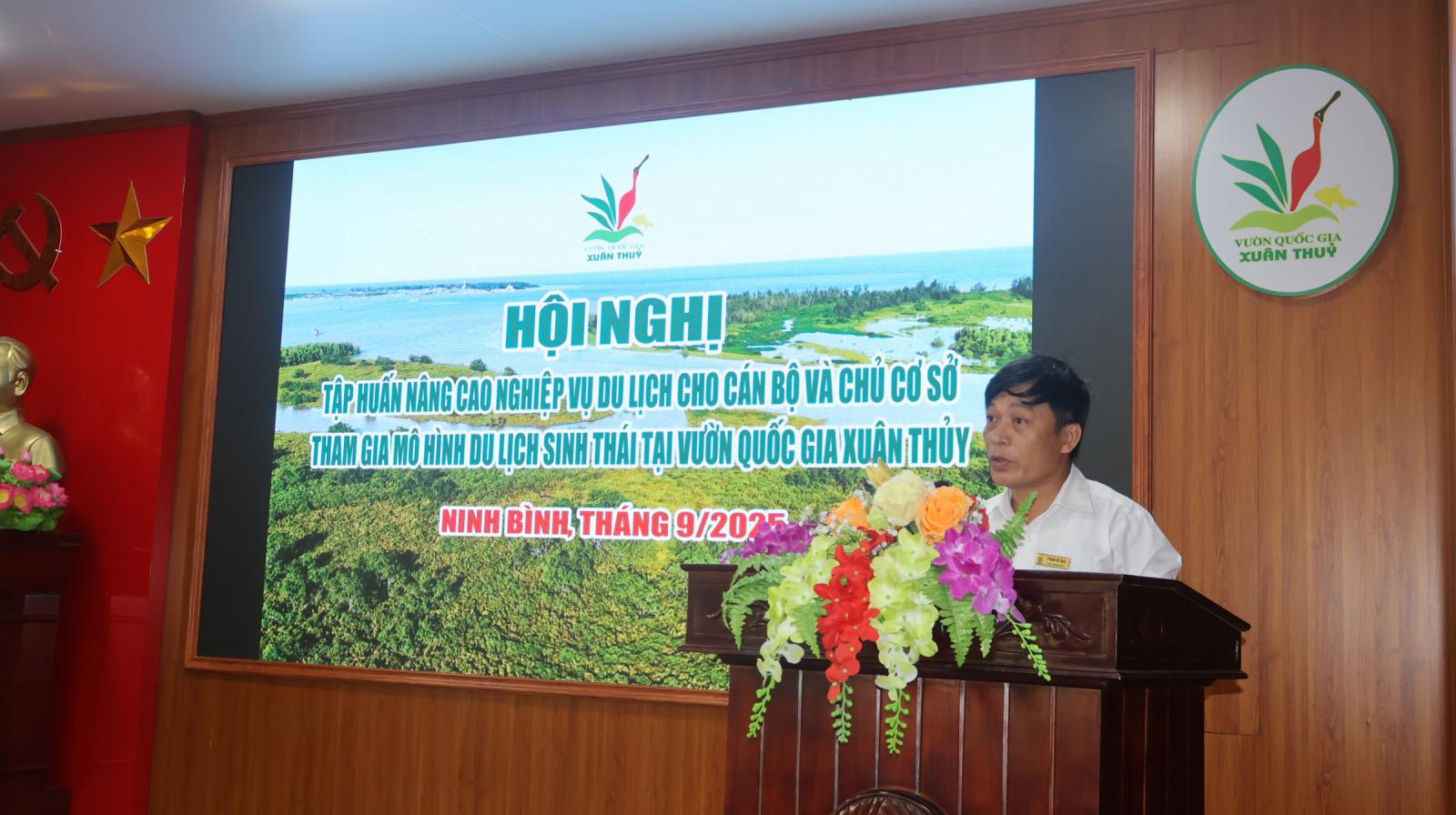Thực hiện kế hoạch năm 2025 của Dự án khoa học và công nghệ “Xây dựng mô hình du lịch sinh thái tại Vườn quốc gia Xuân Thủy”; được sự nhất trí của Sở Khoa học và Công nghệ, từ ngày 08 đến 10/9/2025, Vườn quốc gia Xuân Thủy đã tổ chức Hội nghị tập huấn “Nâng cao nghiệp vụ du lịch cho cán bộ và các chủ cơ sở tham gia mô hình du lịch sinh thái” với mục đích hướng dẫn học viên được nắm vững các kiến thức, kỹ năng trong giao tiếp ứng xử, hướng dẫn và cung cấp dịch vụ cho khách tham quan du lịch.