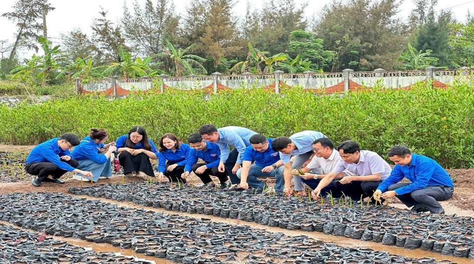 Tiếp đó, các đoàn viên, thanh niên đã tham gia hoạt động gieo ươm cây rừng ngập mặn tại khu vực vườn ươm của Vườn quốc gia. Hoạt động này góp phần phục vụ công tác nhân giống, phục hồi và phát triển rừng ngập mặn trong tương lai, đồng thời nâng cao nhận thức của đoàn viên về vai trò quan trọng của hệ sinh thái rừng đối với môi trường và ứng phó với biến đổi khí hậu.