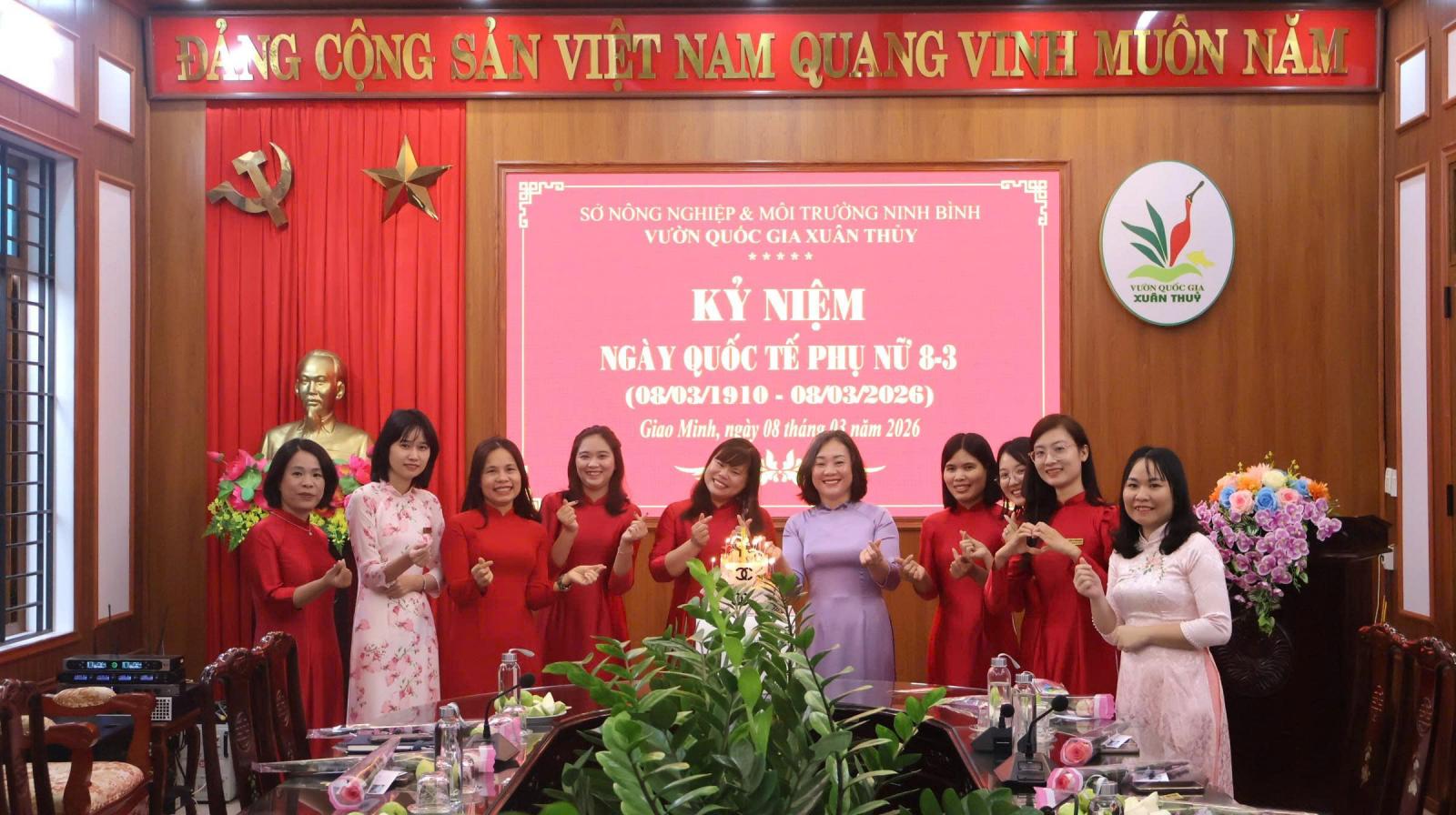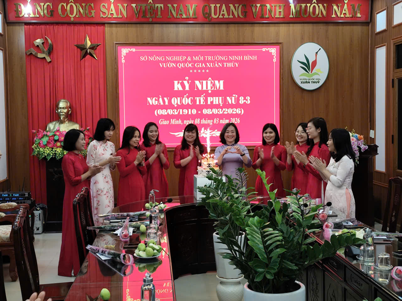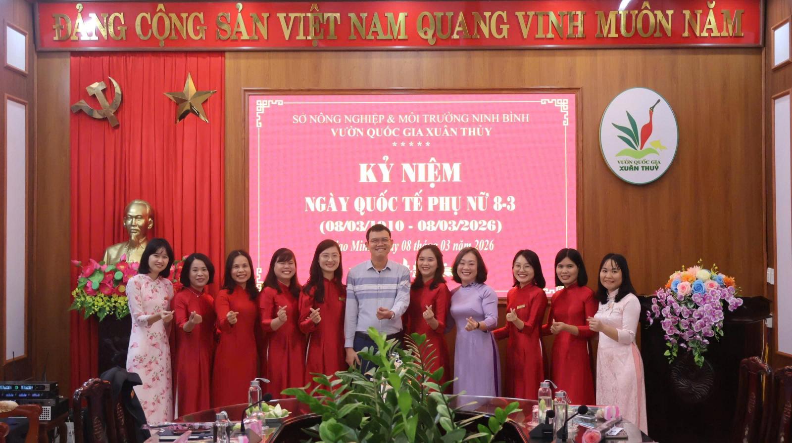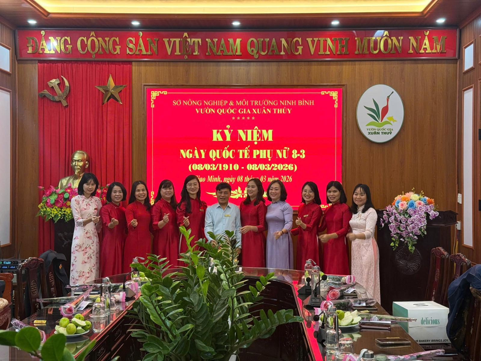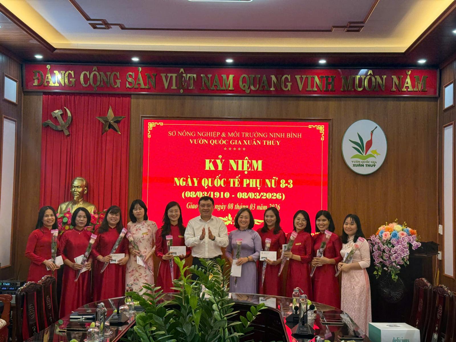 Tại buổi gặp mặt, Ban Lãnh đạo Vườn đã gửi những lời chúc tốt đẹp nhất và những bó hoa tươi thắm đến các chị em. Trong bài phát biểu khai mạc, đại diện Ban Lãnh đạo nhấn mạnh: "Phụ nữ Vườn quốc gia Xuân Thủy không chỉ giỏi việc nước, đảm việc nhà mà còn là những người đã khẳng định mình bằng tri thức, bản lĩnh và sự sáng tạo. Dù trong môi trường làm việc đặc thù nơi vùng cửa sông ven biển nhiều khó khăn, các chị vẫn luôn giữ vững tinh thần lạc quan và hoàn thành xuất sắc nhiệm vụ được giao."